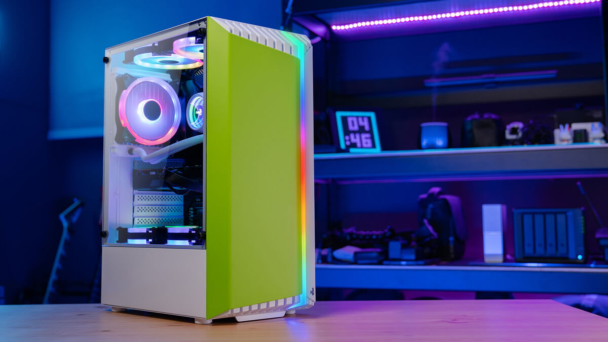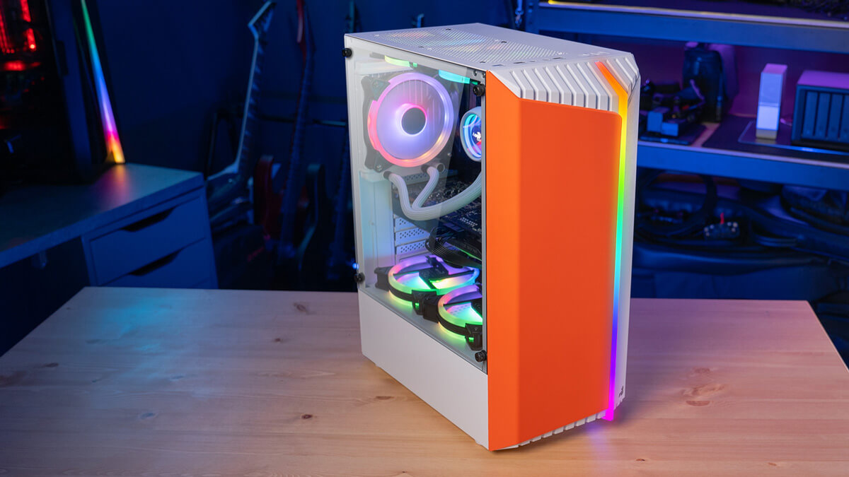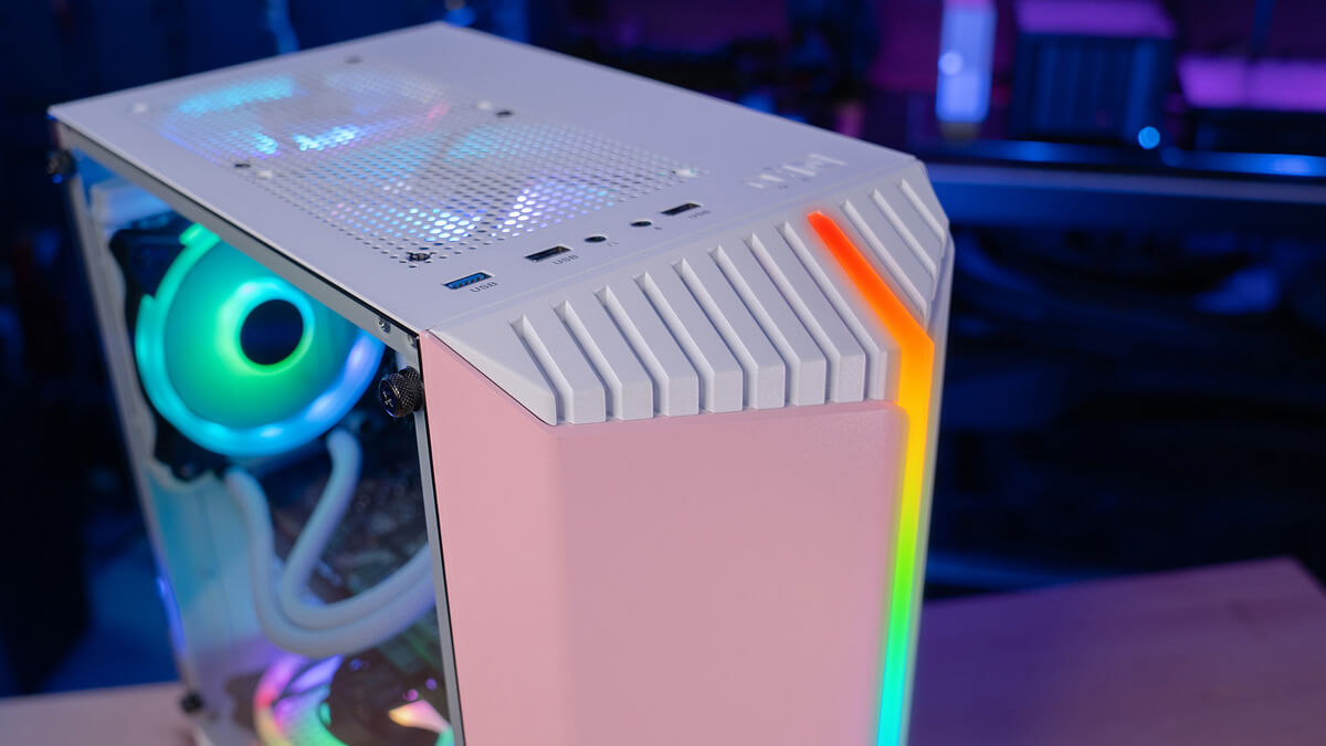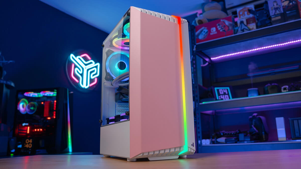 Featuring a unique RGB front panel design, this case delivers a futuristic sci-fi look and feel to your gaming setup. This high-performance mid tower case comes equipped with a tempered glass side panel to showcase the inside of your rig. Comes in four vibrant front panel colors: Red, Green, Orange, and Pink.