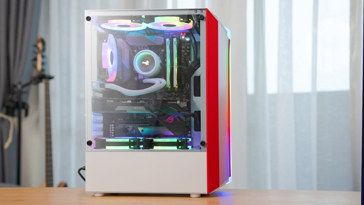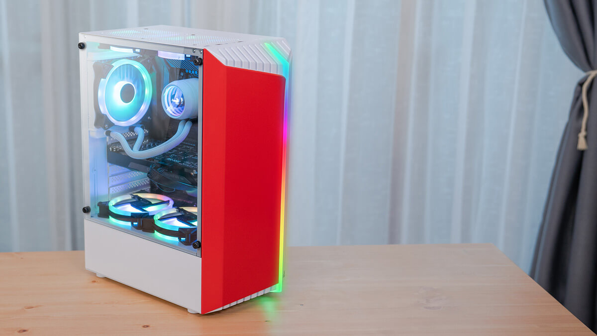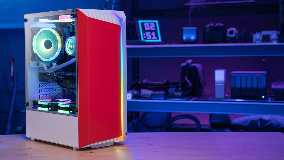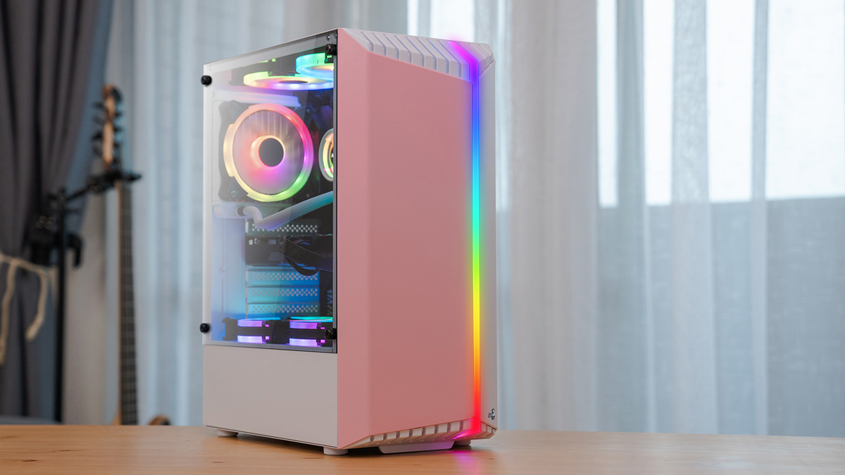Featuring a unique RGB front panel design, this case delivers a futuristic sci-fi look and feel to your gaming setup. This high-performance mid tower case comes equipped with a tempered glass side panel to showcase the inside of your rig. Comes in four vibrant front panel colors: Red, Green, Orange, and Pink.
